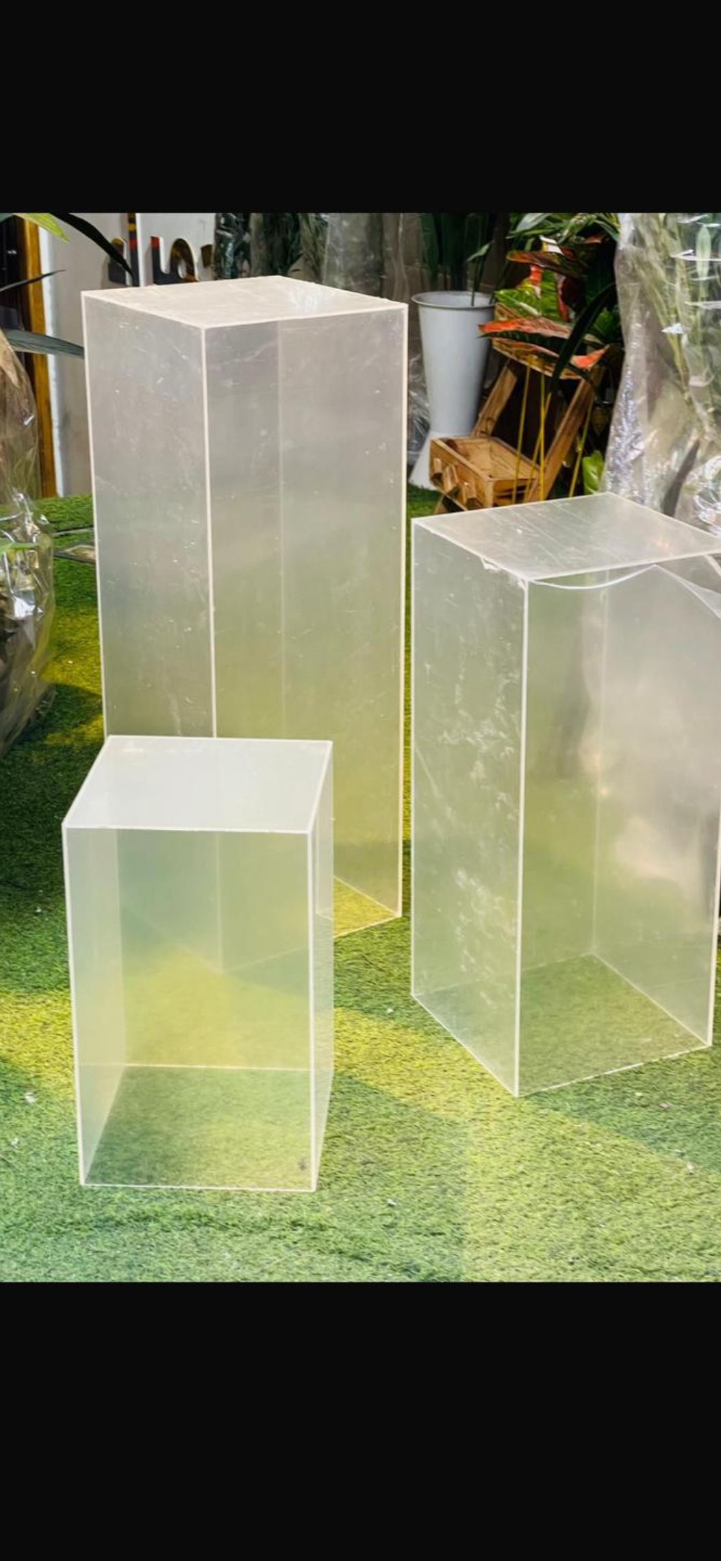 סט במות שקופות עשויות אקריליק איכותי , בעיצוב מודרני נקי.מתאים לאירועים, חתונות, חנויות, חלונות ראווה וצילומי סטודיו.