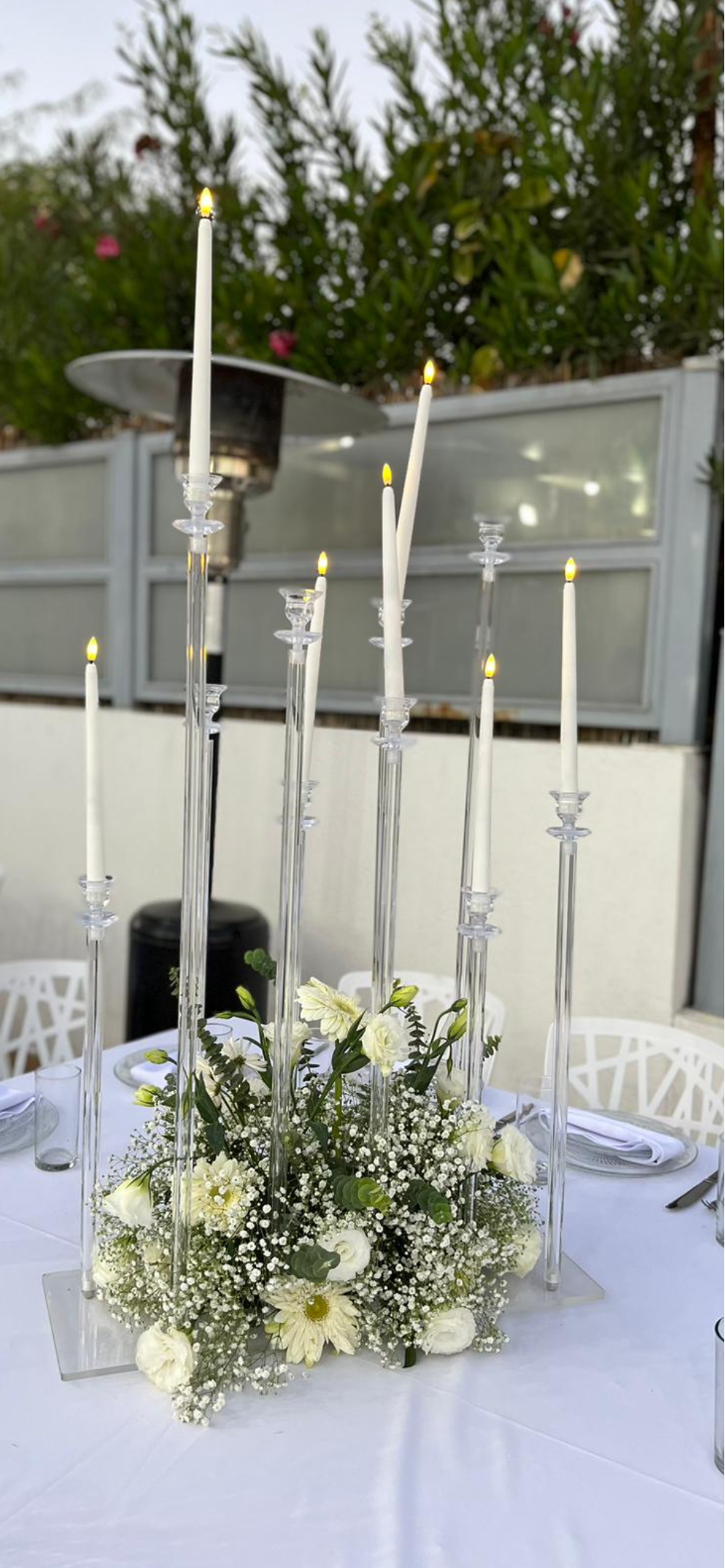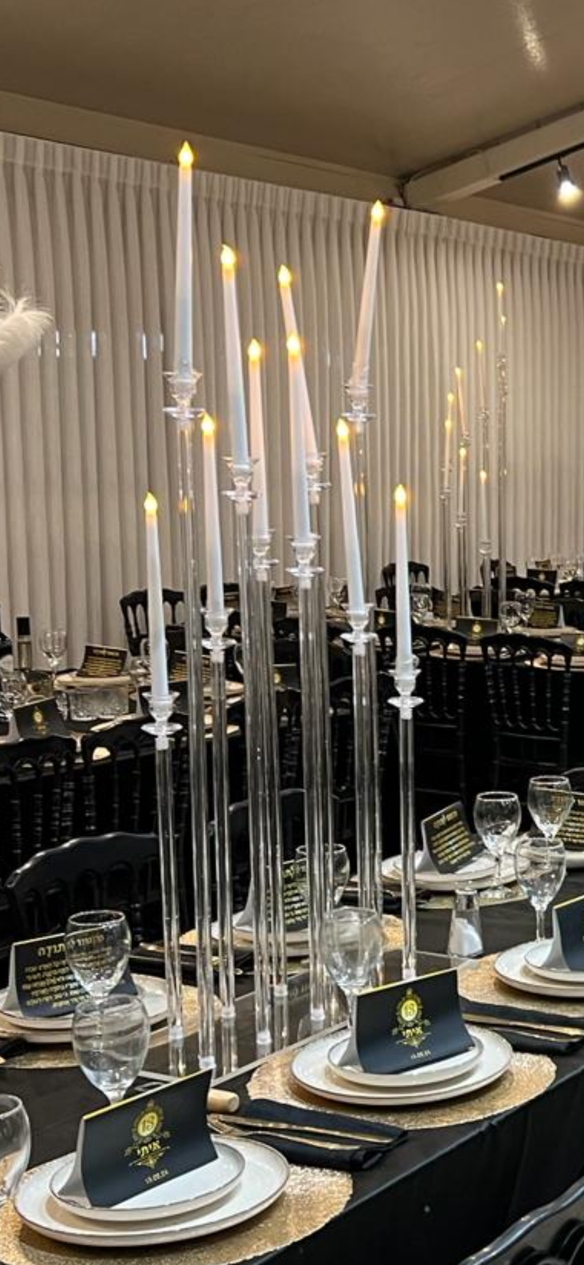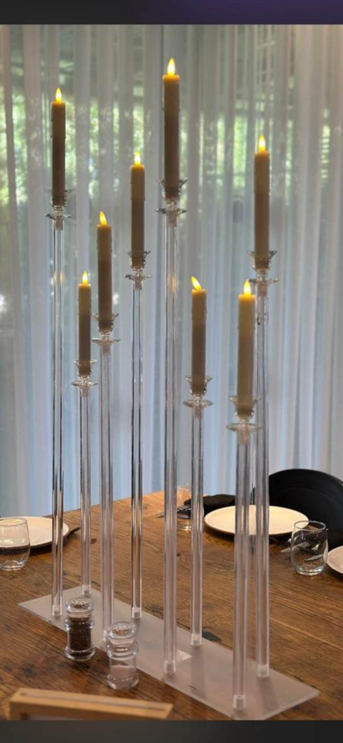 פמוט מלבני אקרילי שקוף בעיצוב מושלם כמרכז שולחן לחתונות, אירועים, וקונספטים דקורטיביים מכל הסוגים