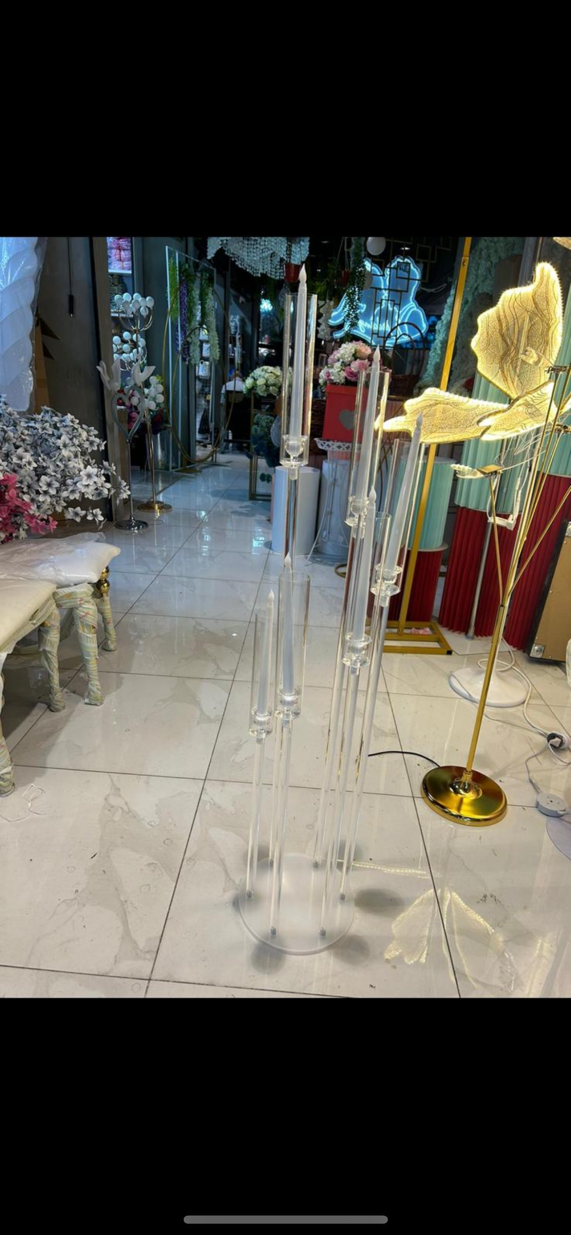 פמוט אקרילי שקוף בגובה 118 ס״מ, בעיצוב יוקרתי ומרשים היוצר נוכחות וגובה על השולחן. מושלם כמרכז שולחן לחתונות, אירועים